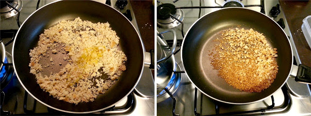 Sbriciolate il pane, o frullatelo con un robot da cucina, e tostatelo in padella con un filo di olio piccante.