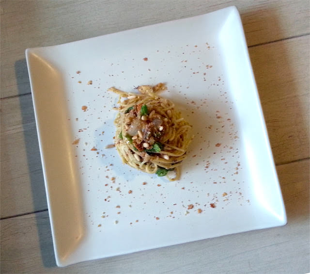 Impiattate aggiungendo ad ogni piatto un filo d’olio piccante e una decorazione di pinoli e pangrattato…BUON APPETITO!