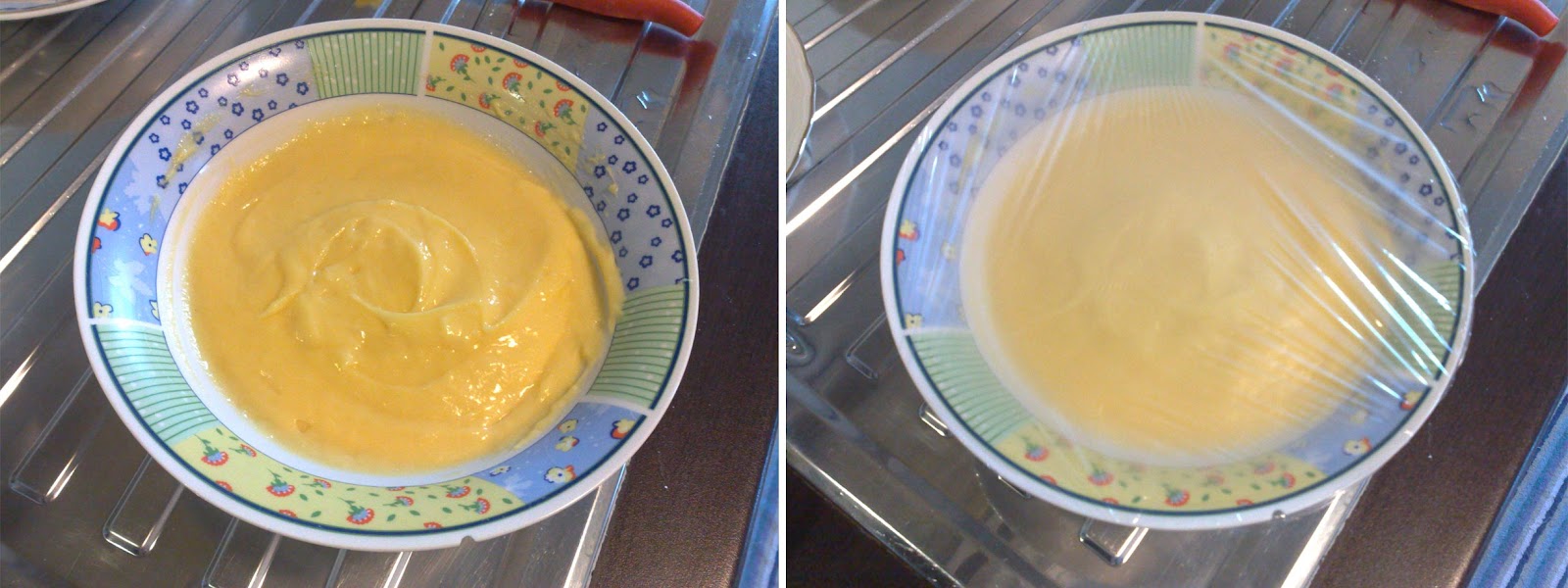 Una volta raggiunta la consistenza desierata togliete dal fuoco, versate la crema in un recipiente di vetro o di ceramica e fatelo raffreddare a temperatura ambiente coperto con della pellicola trasparente.