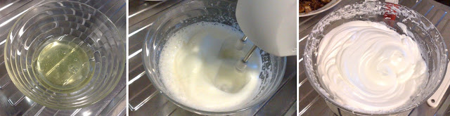 Montate gli albumi a neve fermissima insieme a metà dello zucchero. Usate uno sbattitore elettrico e armatevi di pazienza…io ci ho messo quasi 10 minuti.