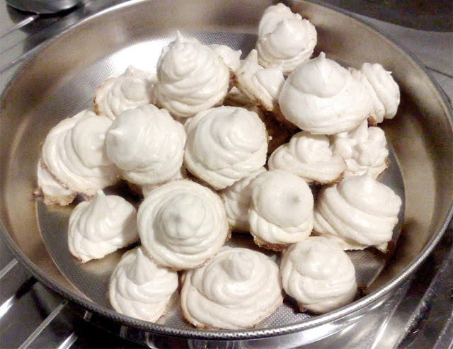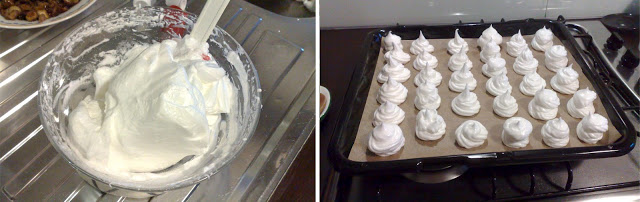 Mettete il tutto in una sacca da pasticcere e fate delle piccole piramidi su una teglia rivestita di carta da forno.