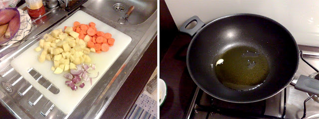 Tagliate lo scalogno e le carote a fette sottili e le patate a tocchetti.
