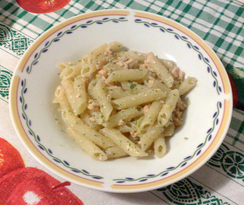 Per oggi un primo di pesce, semplice e gustoso, che preparerete in pochissimo tempo…giusto quello che ci vuole per far cuocere la pasta 😉