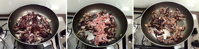 Tagliate la carne a striscioline sottili e infarinatele grossolanamente.