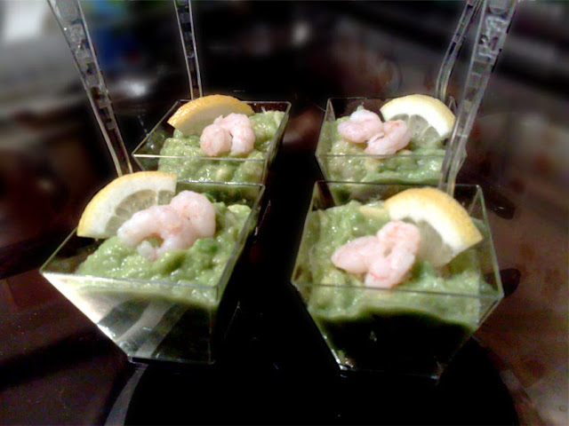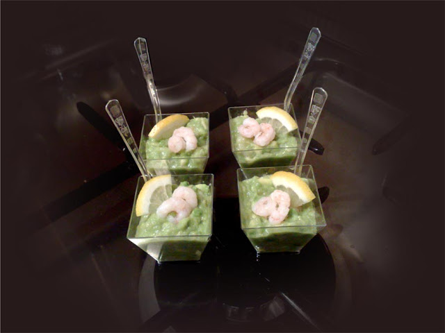 Suddividere il composto in 4 bicchierini monoporzione, decorate con i gamberi e fettine di limone e….BUON APPETITO!