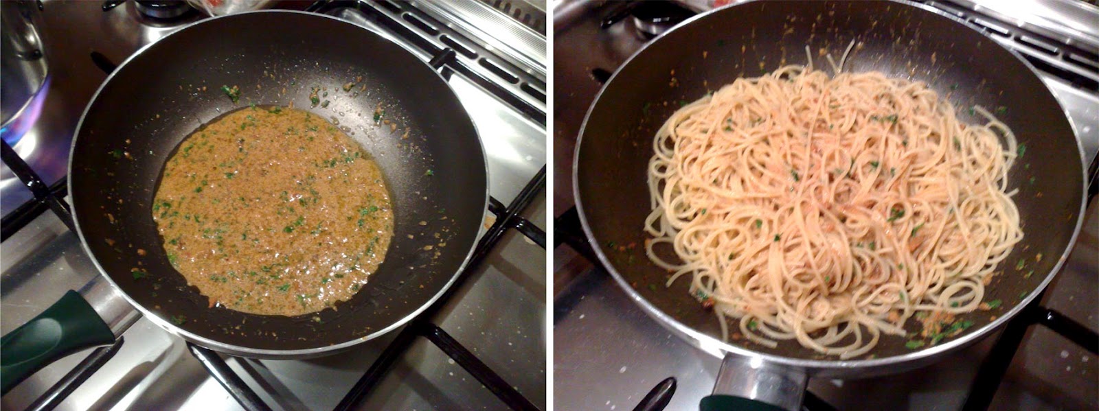 Il condimento è molto veloce da preparare, quindi potete tranquillamente farlo mentre cuoce la pasta.
