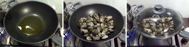 Una volta sciacquate mettetele in una padella con un filo d’olio evo e 2 spicchi d’aglio e coprite con un coperchio. Lasciate che si aprano con il vapore.