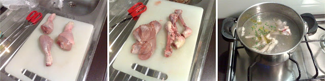 Per prima cosa dobbiamo disossare i fusi di pollo e tagliare la carne a tocchetti che metterete da parte in una ciotolina.