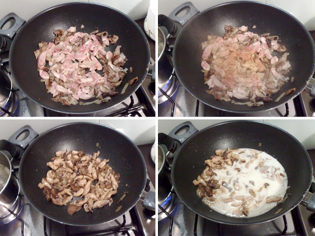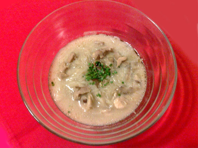 A questo punto aggiungete il pollo a pezzetti e lo zenzero, fate rosolare bene, dopo di chè aggiungete il latte di cocco e un mestolo di brodo di pollo, abbassate il fuoco e fate cuocere per altri 5/8 minuti.