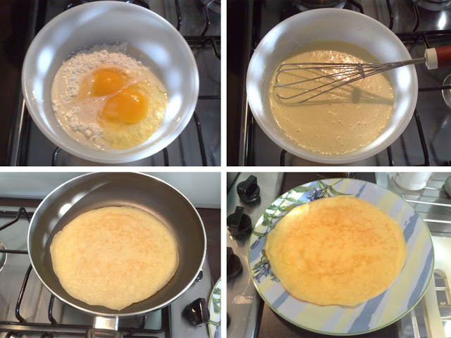 Iniziate a fare le crespelle scaldando una padella antiaderente e ungetela con della carta da cucina sporcata di olio. Versateci un mestolo di pastella e fate cuocere circa un minuto per lato girandole con delicatezza aiutandovi con una spatola o una paletta.