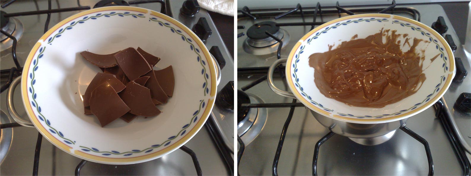 Spezzettate il cioccolato e scioglietelo a bagnomaria.