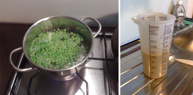 Sbollentate i piselli in acqua salata per qualche minuto, scolateli e teneteli da parte. Filtrate molto bene il brodo del soutè con un colino a maglie fitte, ripetete l’operazione più volte per essere sicuri di eliminare eventuali tracce di sabbia.