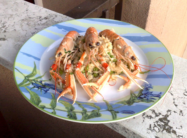 Servite il risotto caldo mettendo gli scampi in cima e…BUON APPETITO!