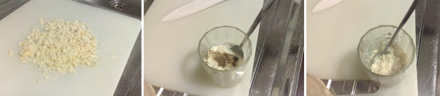 Tagliate a pezzetti piccolissimi il caciocavallo e miscelatelo con della ricotta vaccina, sale e pepe. Se preferite potete frullare il tutto aggiungendo un goccio di latte.