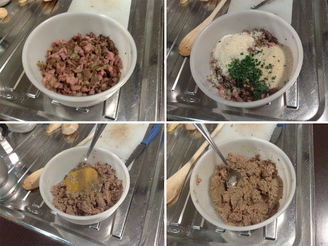 Per prima cosa preparate il ripieno, così avrà il tempo di riposare e si amalgameranno bene tutti i sapori al suo interno.