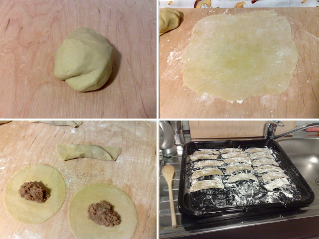 A questo punto stendete la pasta in sfoglie sottili, ritagliate dei cerchi con un tagliapasta della dimensione di 6-8 cm e posizionate un cucchiaino di ripieno al centro di ogni disco.