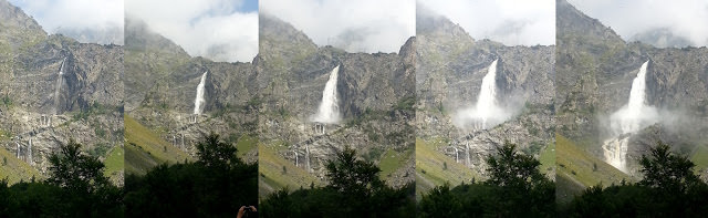 Ieri sono andata a fare una bella camminata in montagna, in Valbondione (Bg) in occasione dell’apertura delle Cascate del Serio. Sono le più alte d’Italia con 315 metri di altezza e le seconde in Europa. Sono formate da un triplice salto di 166 mt. di dislivello. La diga dalla quale viene liberata la massa d’acqua fu completata nel novembre 1931.
