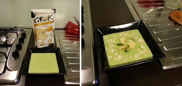 Decorate la crema con un cavolino tagliato a fettine sottili e accompagnate il tutto con degli ottimi Grok gusto classico e…BUON APPETITO!