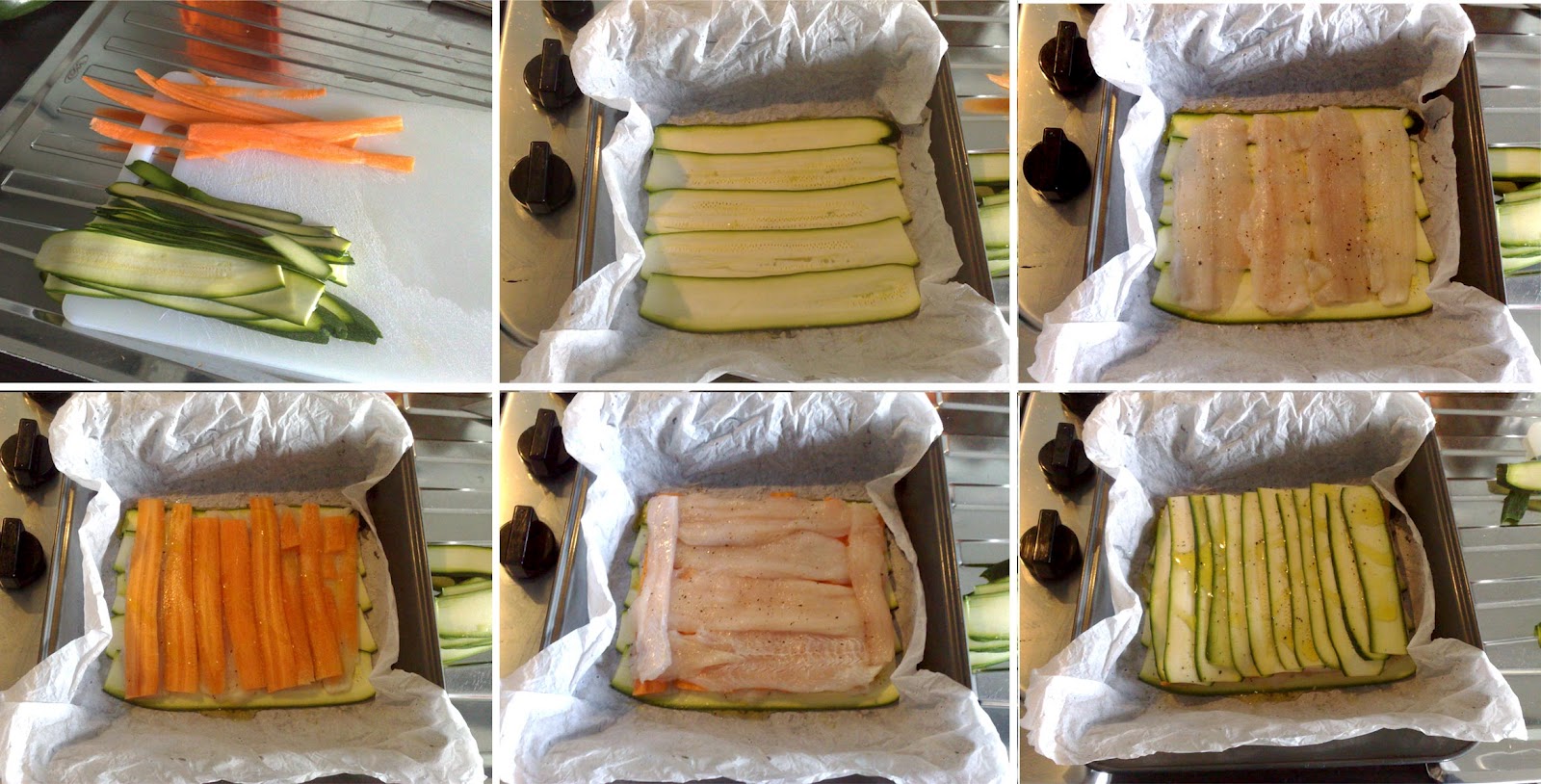 Proseguito con uno strato di carote, poi ancora sogliola e terminate nuovamente con le zucchine.