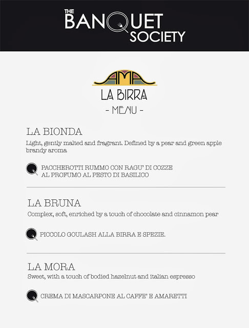 Questo il menù che accompagnerà la degustazione, tre piatti speciali per tre birre eccezionali.