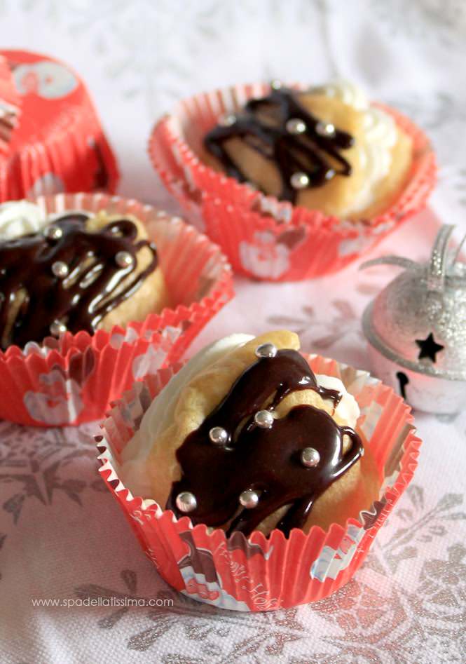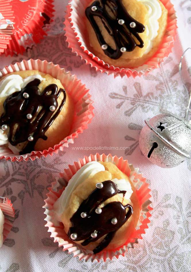 Potete dare un ultimo tocco natalizio decorando con perline argentate e servendo i bignè ai vostri ospiti all’interno di simpaticissimi pirottini di Natale.
